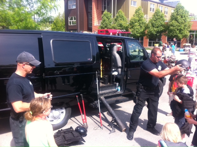 They closed off their parking lot for the event and had firemen, a police swat team, tons of activities for kids and free ice cream. Jason had to get behind a riot shield for a photo op! We had a blast participating. It was obvious that the amount of donations of pop tabs and brass keys for scrap metal were going to generate a lot of money for the Ronald McDonald house. This might be something you consider doing in your office, school or church! Let us know any stories you have about collecting pop tabs or brass keys for the Ronald McDonald house by replying to this post!