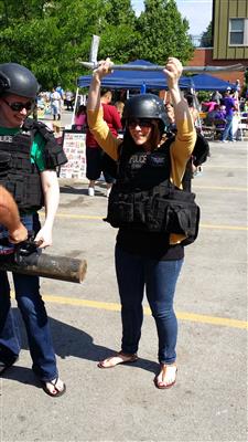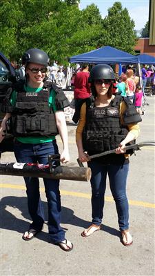 Caitlin and Melissa dressed up in the SWAT Team gear… hilarious!