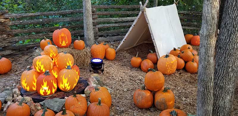 My favorite part was the pumpkin trail. A long trail with sections of themed, pumpkins. They carved all kinds of woodland creatures. The pumpkins stacked up into a campfire positioned in front of a tent was by far, the coolest. What you didn’t see was anything scary. There were no witches, or devils, or skeletons. It was all very Silver Dollar City. I didn’t hear anyone complaining. I appreciate the park figured out a way to celebrate a little Halloween but to stay true to their beliefs.