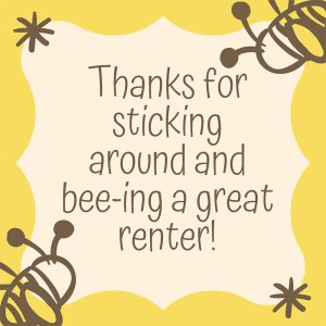 Amy is our very own renewal coordinator. She packages up the gifts for the renters so they look pretty. As part of the renewal process, she does a walkthrough of the house. She has told me she loves to hand the gift over to renters who meet her at the house. If they’re not there, she leaves the present for them to find when they come home.